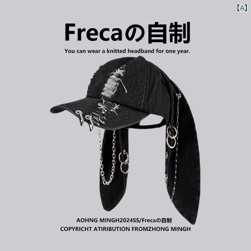 帽子 うさぎ かわいい ウェイストランド ウサギの 耳の デニム ダックビル 帽子 女性 Y2K ホール チェーン ヒップ ホップ ヤ ビ 野球帽