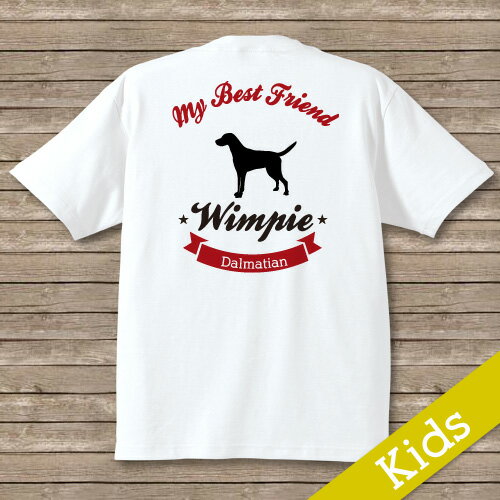 I LOVE DOG 愛犬・ペットのデザインでお名前が入るプリントTシャツ!ダルメシアン キッズサイズ(片面プリント後)