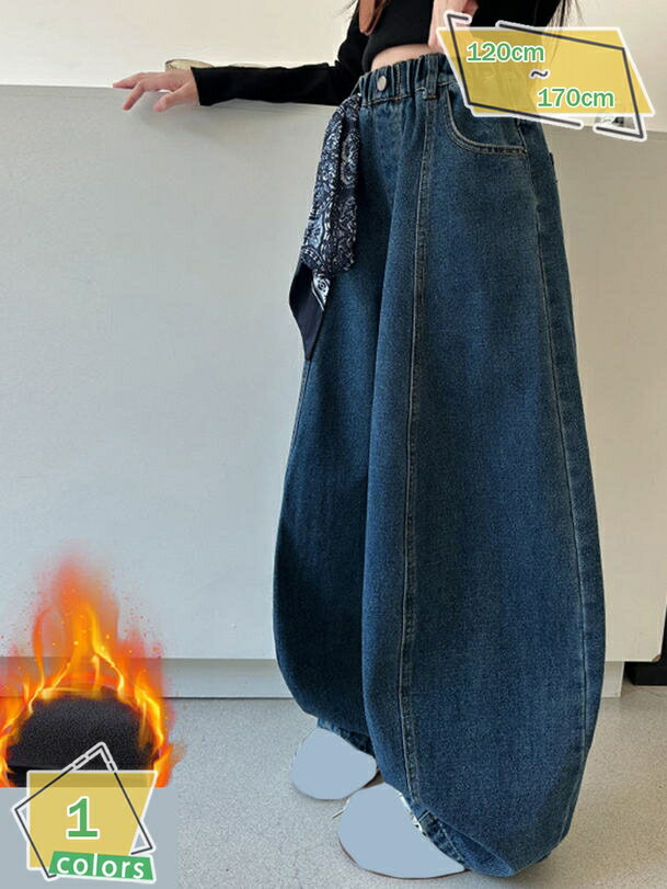 女の子 デニムワイドパンツ ジーンズ キッズ ルーズ 防寒 子供 裏起毛デニム 無地 お洒落 冬服 冬着 ダンス衣装 演出着 カジュアル