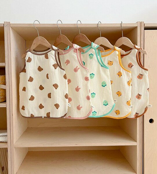 夏新作 韓国 ins 赤ん坊 寝袋 薄い 綿 チョッキ パジャマ 防蹴被 連体服 子供服