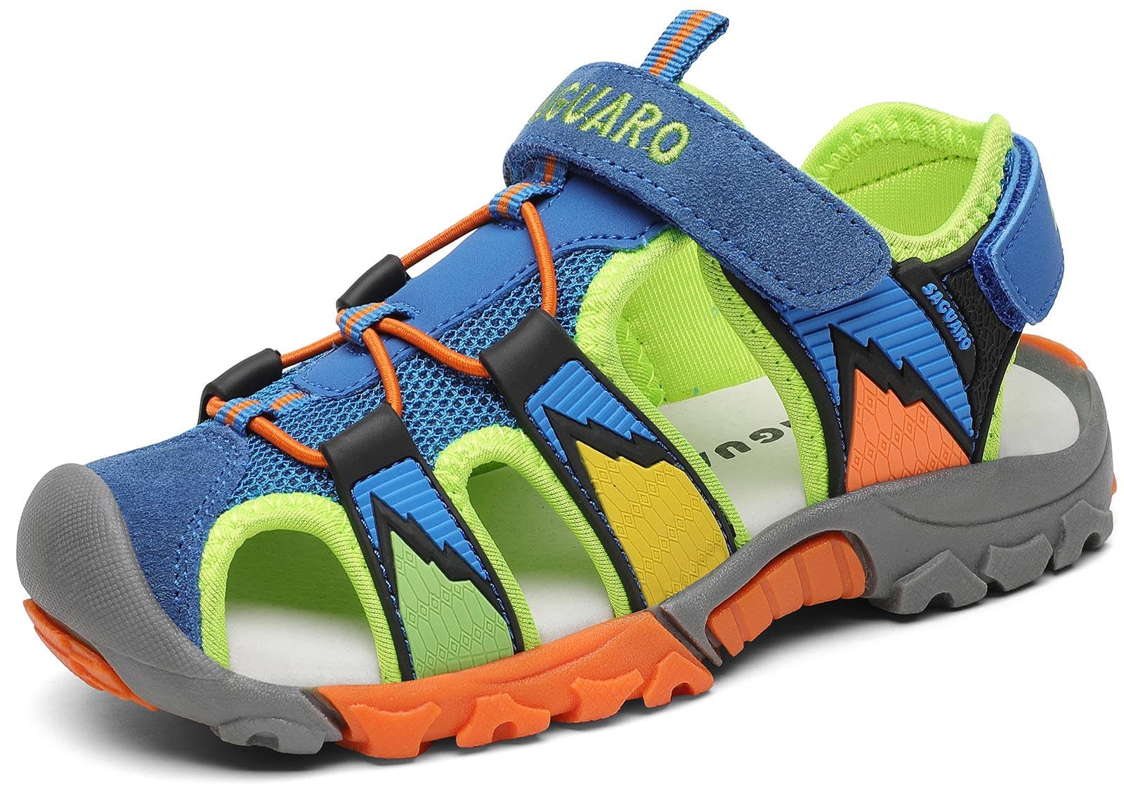 【送料無料】[Putu] キッズ サンダル ビーチサンダル つま先保護 マジックテープ アウトドア スポーツ 透気 柔らかい 滑り止め 春夏秋 男の子 女の子 色:イエローグリーン、サイズ:22.0 cm