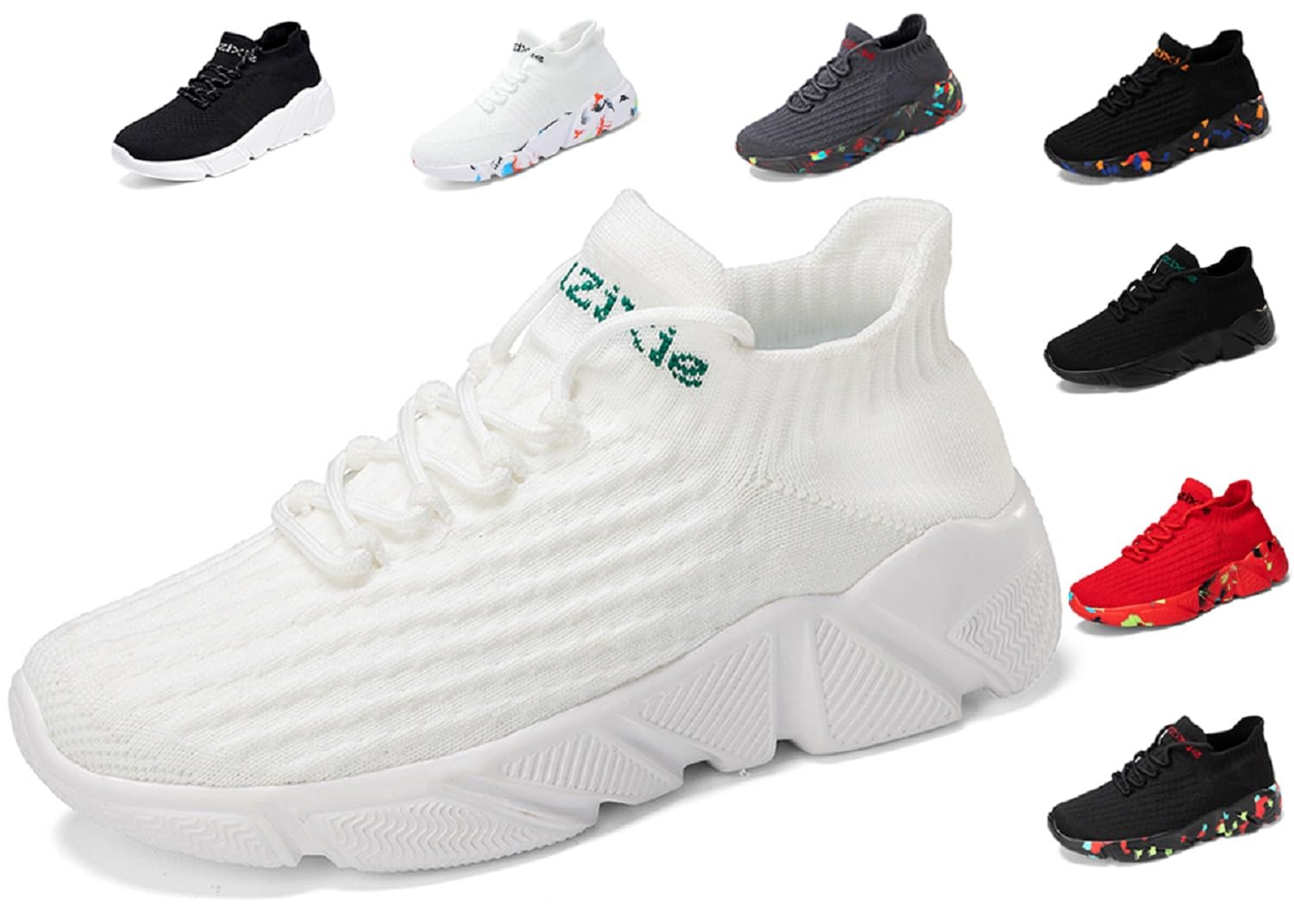 【送料無料】[GongPu] シューズ メンズ スニーカー レディース スリッポン 厚底 ナースシューズ スポーツシューズ ウォーキングシューズ ランニングシューズ 白 運動靴 黒 トレーニング カップルシューズ 幅広 立ち仕事 超軽量 色:SL-ホワイト、サイズ:27.5 cm