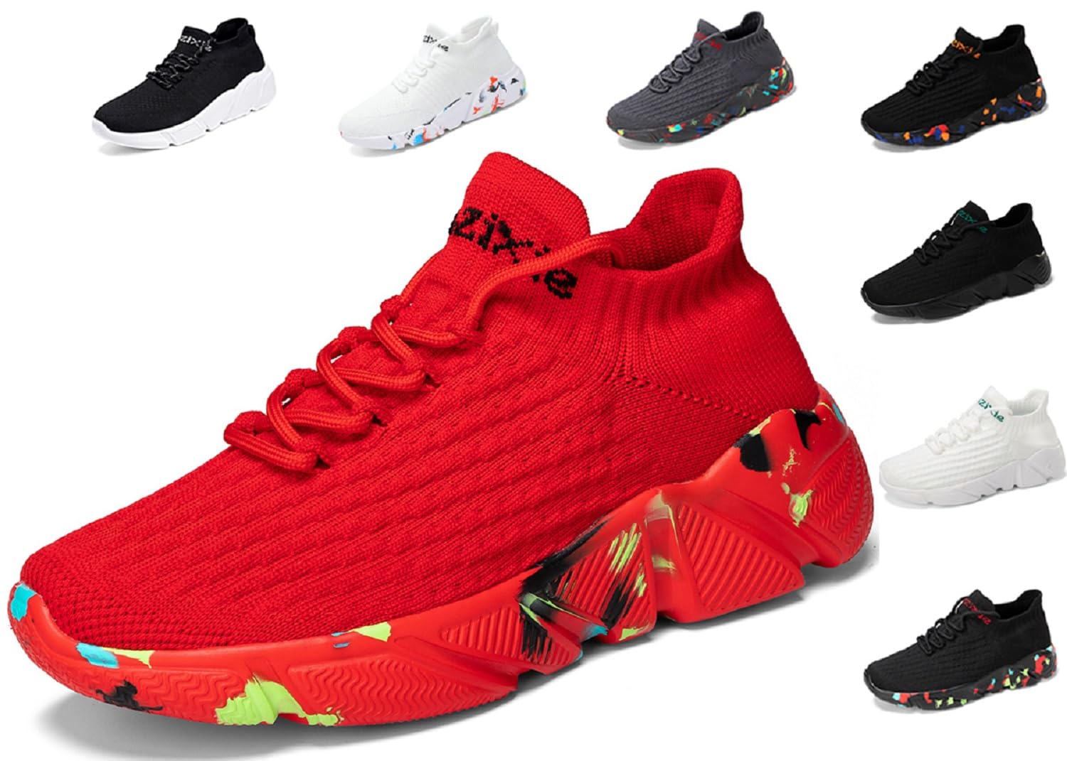【送料無料】[GongPu] シューズ メンズ スニーカー レディース スリッポン 厚底 ナースシューズ スポーツシューズ ウォーキングシューズ ランニングシューズ 白 運動靴 黒 トレーニング カップルシューズ 幅広 立ち仕事 超軽量 歩 色:SL-レッド、サイズ:28.0 cm