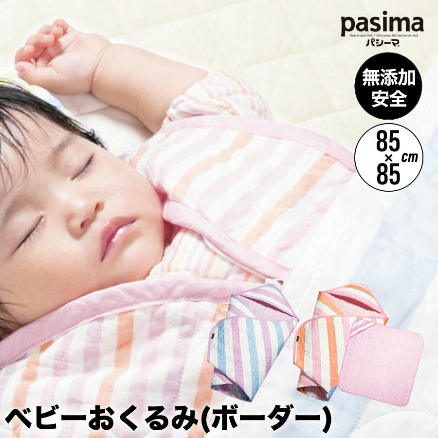 パシーマ pasima ガーゼと脱脂綿でできた自然寝具 ベビー おくるみ ボーダー 2カラー 85cmx85cm
