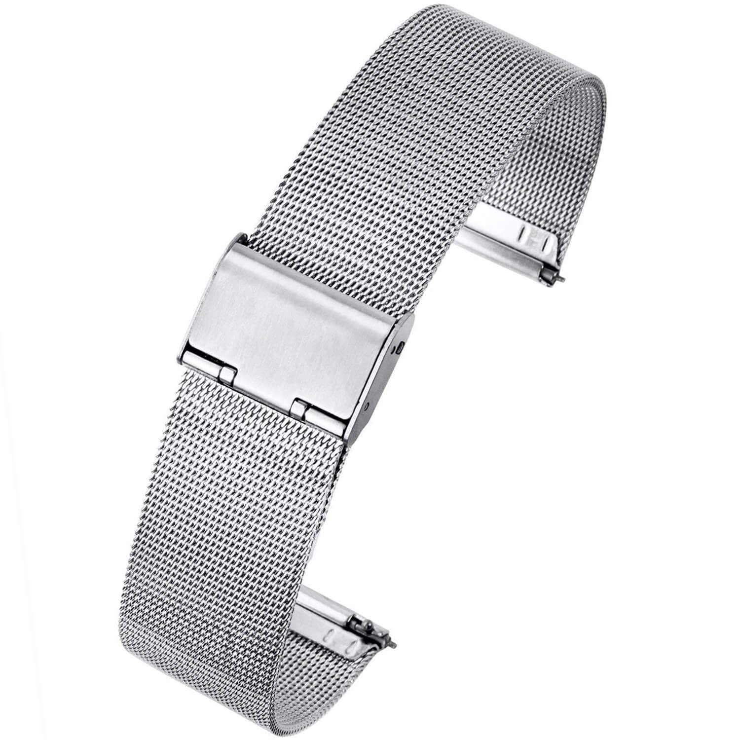 【送料無料】REOTTI 時計バンド 時計ベルト ステンレス メッシュ 腕時計 ワンタッチ式 4色 10サイズ 8mm-22mm (18mm, シルバー)
