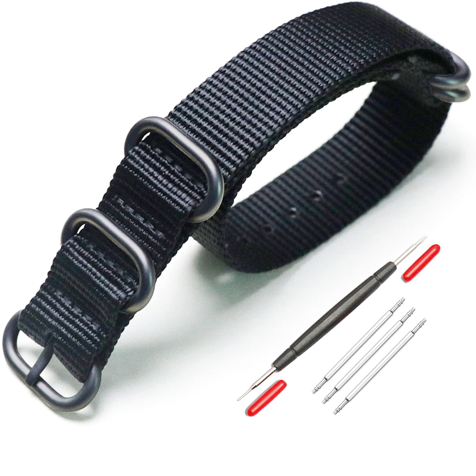 【送料無料】[XYTYJQ] for 時計バンド NATO 用タイプ 時計ベルト 時計バンド ナイロン 替えベルト 18mm 20mm 22mm 24mm 腕時計 バンド プレミアム ナイロン 替えベルト (交換工具 バネ棒付 24mm (ブラック ブラックバックル)