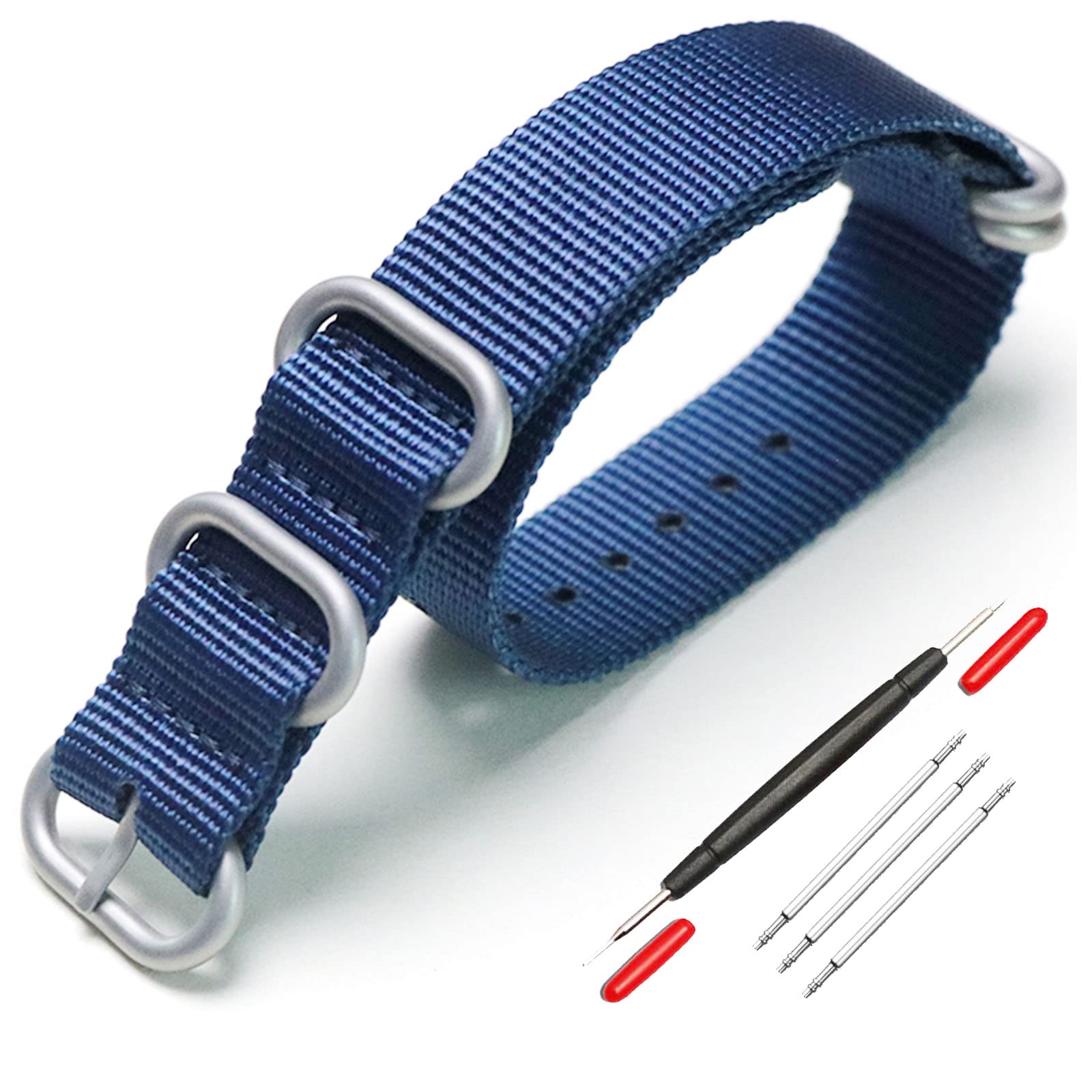 【送料無料】[XYTYJQ] for 時計バンド NATO 用タイプ 時計ベルト 時計バンド ナイロン 替えベルト 18mm 20mm 22mm 24mm 腕時計 バンド プレミアム ナイロン 替えベルト (交換工具 バネ棒付 22mmブルー シルバーバックル )