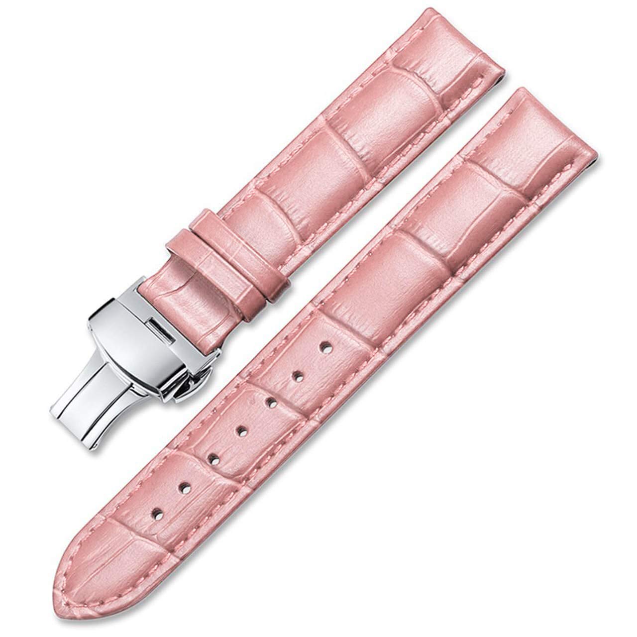 【送料無料】REOTTI 時計ベルト 本革 Dバックル 12-22mm 9色 カーフレザー 革 交換用 ストラップ 防水 防汗 ワンプッシュ式 (18mm, ピンク)