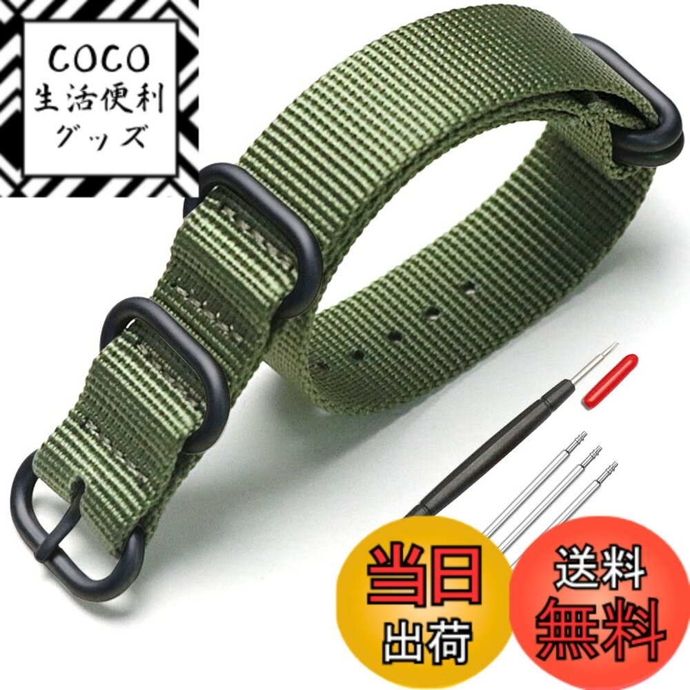 【送料無料】[XYTYJQ] for 時計バンド NATO 用タイプ 時計ベルト 時計バンド ナイロン 替えベルト 18mm 20mm 22mm 24mm 腕時計 バンド プレミアム ナイロン 替えベルト (交換工具 バネ棒付 24mm (グリーン ブラックバックル)