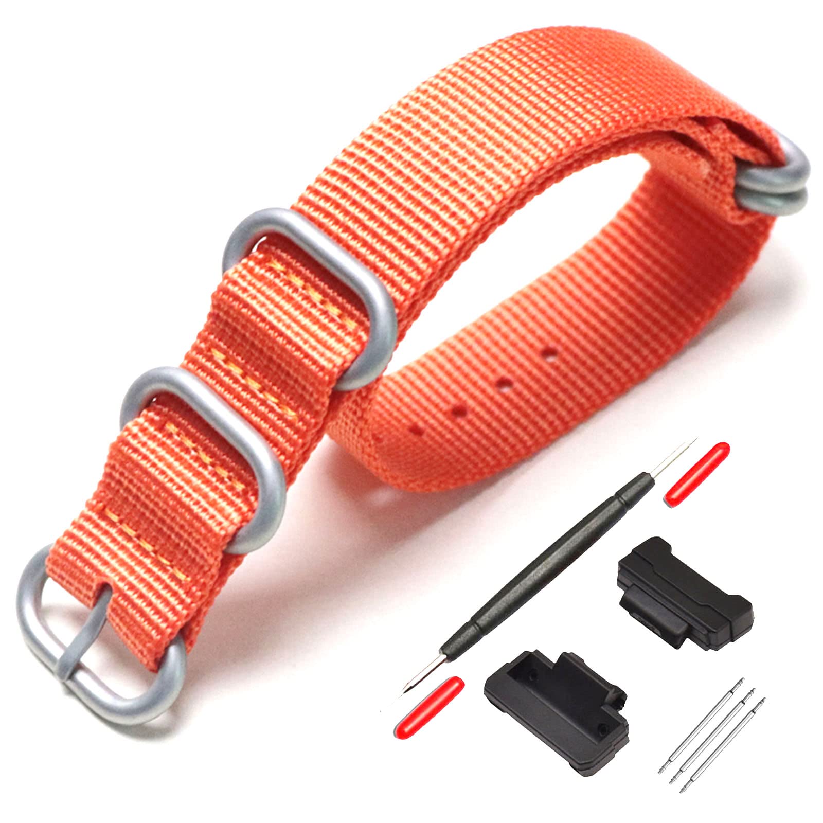 【送料無料】[XYTYJQ] for 時計バンド G-SHOCK 対応トナイロン時計バンド 交換用 時計ベルト GA-100/110/120/150/200/300 、GD-100/110/120/G-8900、DW-5600、GM-M5610、DM-6900、G-5600、GW-6900、DW-9052、GLS-8900 に適しています (オレンジ(シルバーバックル)
