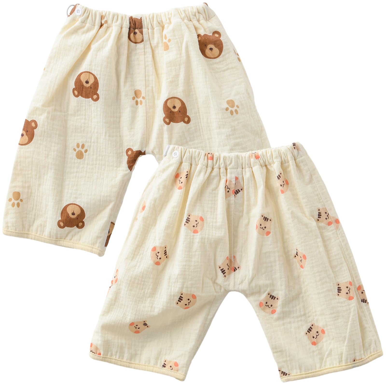 【送料無料】[GoUseGo] おねしょ ズボン 防水 2枚セット 4層構造 0歳-9歳 子供 おねしょパンツ 綿 通気 小学生 おねしょ対策 男の子 女の子 キッズ トレパン トイレトレーニング 幼稚園 保育園 寝冷え対策 色:クマxリズ、サイズ:M