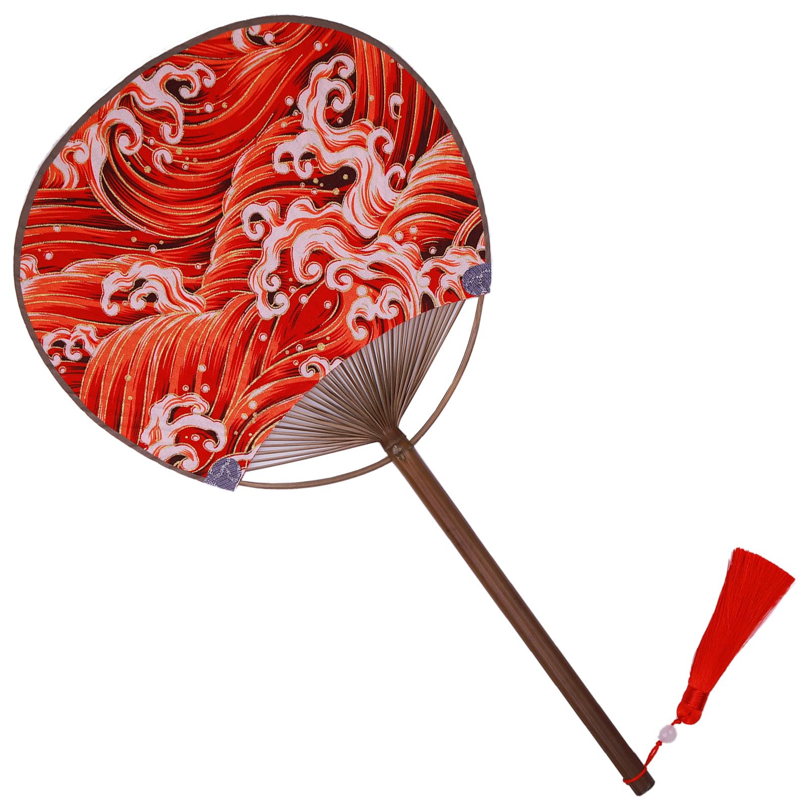 【送料無料】[TOuWA] 扇子 団扇 うちわ レディース メンズ 竹骨 和柄 軽量 日本 お土産 暑さ対策 夏祭り お祭り 花火大会 浴衣 着物 和装 和小物 歌舞伎小物 紳士用 男女兼用 色:赤地波柄