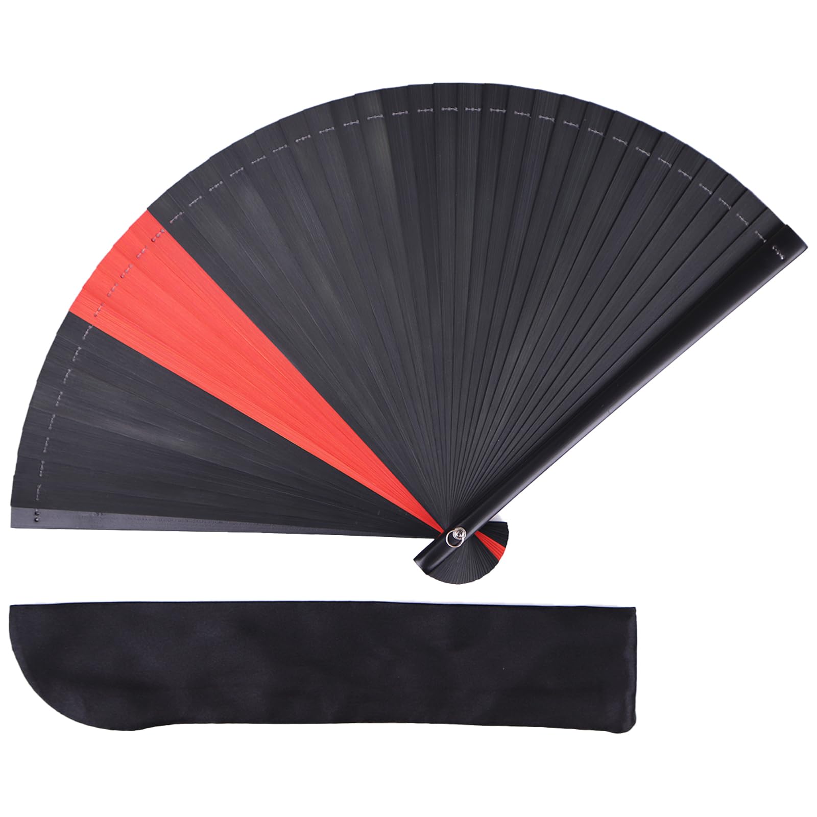 【送料無料】[TOuWA] 扇子 レディース メンズ 竹骨 和柄 軽量 日本 お土産 お祭り 花火大会 忘年会 新年会 発表会 浴衣 着物 和装 和小物 歌舞伎小物 紳士用 男女兼用 センス 2点セット (扇子、扇子袋 竹製) 色:黒+赤