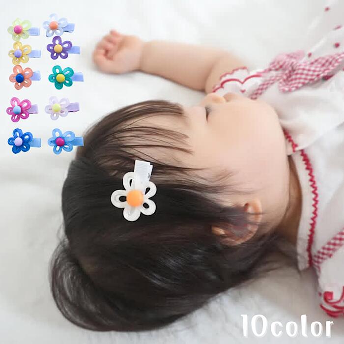 ベビーヘアクリップ 10カラー フラワー 花 滑り止め付き ヘアピン 赤ちゃん 子供 薄毛 滑らない ずれない ピンク ブルー 青 水色 花 可愛い お洒落 おしゃれ かわいい 幼児 幼稚園 新生児 0歳 1歳 2歳 3歳 4歳 5歳 Reese ベビークリップ