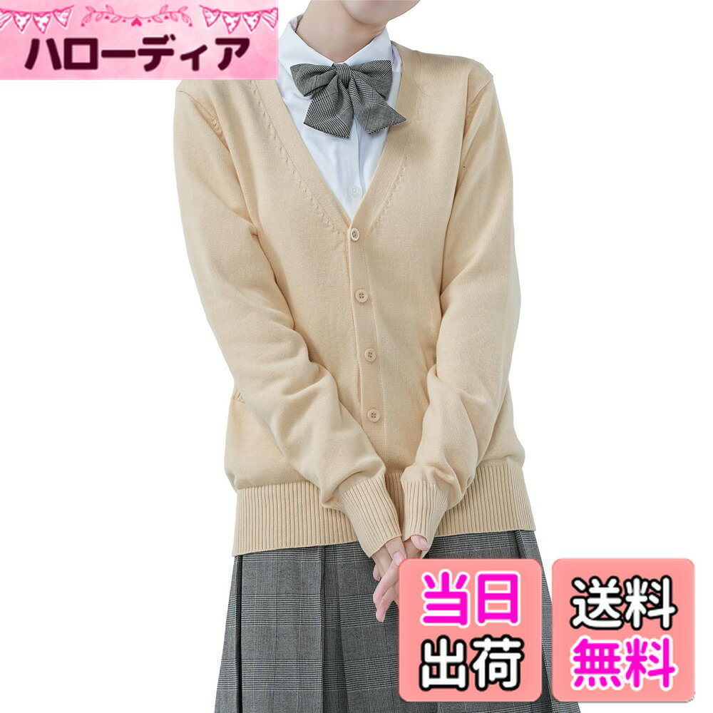 【送料無料】[Sharphon] スクール 制服 カーディガン 綿100 Vネック ポケット 長袖 ニット 女子 セーター かわいい レディース カジュアル 色:ベージュ、サイズ:XS