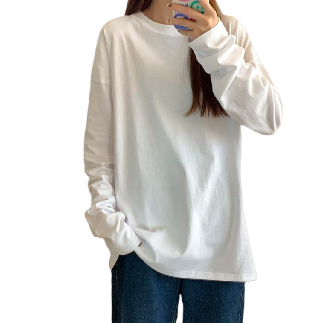 【送料無料】[Xingxin] Tシャツ レディース 長袖 トップス 【一度着たら虜になる!着痩せ見え×抜け感UP】 カットソー クルーネック ティーシャツ ロングスリーブ 無地 カジュアル ゆったり 重ね着 きれいめ オシャレ 秋 シンプル 色:ホワイト、サイズ:2XL