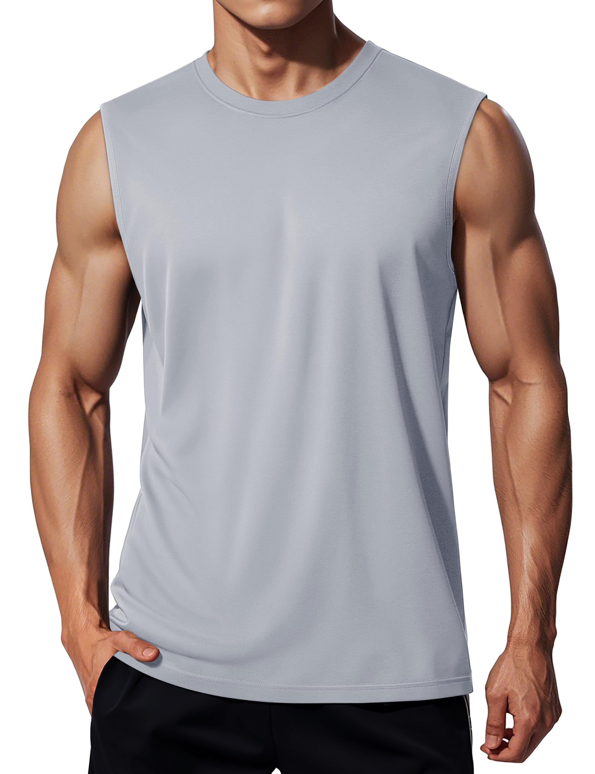 【送料無料】 タンクトップ メンズ トレーニングウェア UVカット 速乾 ノースリーブ ジム 筋トレ スポーツウェア ランニング 軽量 クルーネック 夏服 色:ライトグレー、サイズ:2XL