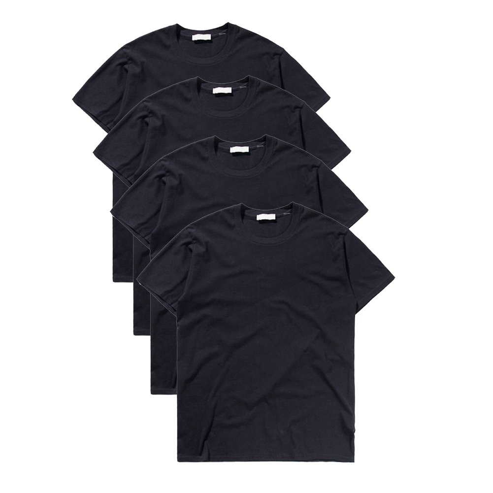 【送料無料】 tシャツ メンズ 半袖 無地 吸汗 速乾 インナーシャツ おおきいサイズ セット クルーネック 厚手 4枚組 3枚組 綿100% 色:ブラック 4枚組、サイズ:L