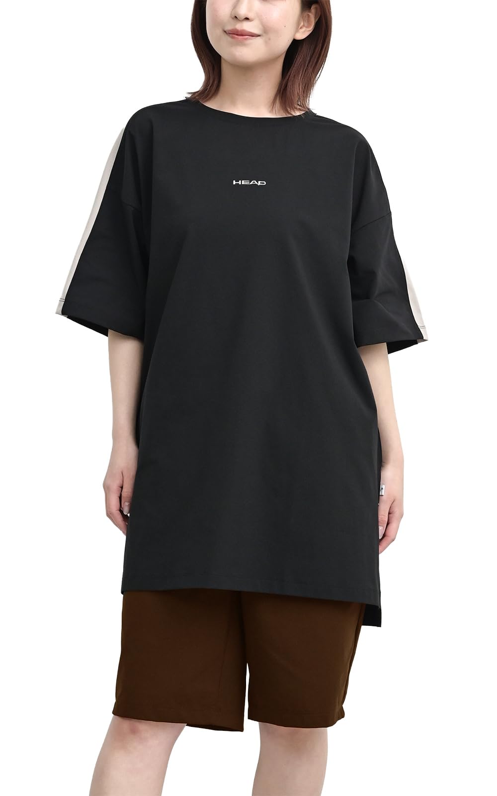 【送料無料】[JANJAM] 大きいサイズ レディース Tシャツ 半袖 吸汗速乾 UVカット ストレッチ 耐塩素 スポーツウェア トップス 色:ブラック、サイズ:LL