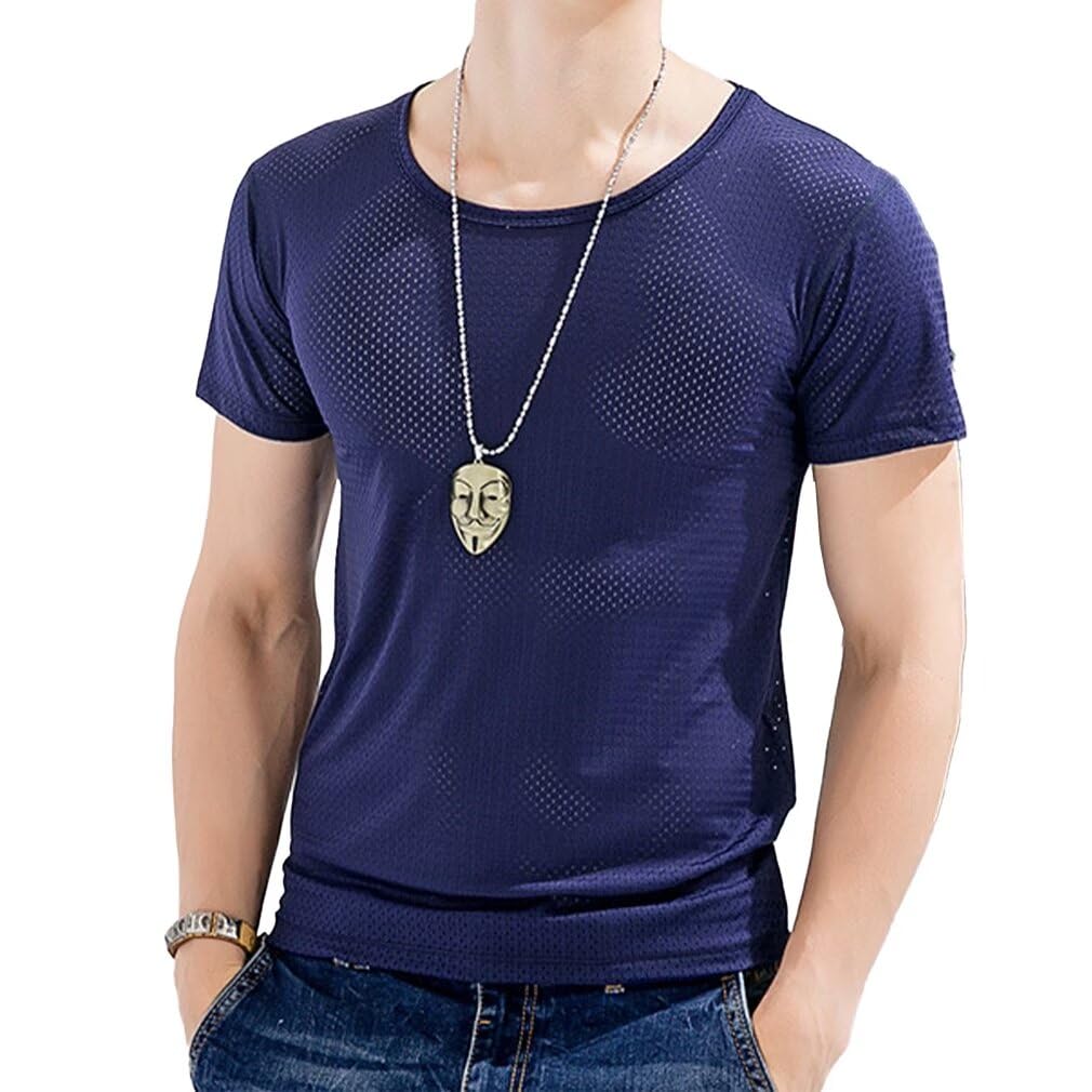 【送料無料】[Running sheep] アンダーシャツ メンズ スポーツ tシャツ インナー トレーニングウェア メッシュ ランニング アンダーウェア 接触冷感 通気速乾 色:ネイビー、サイズ:S