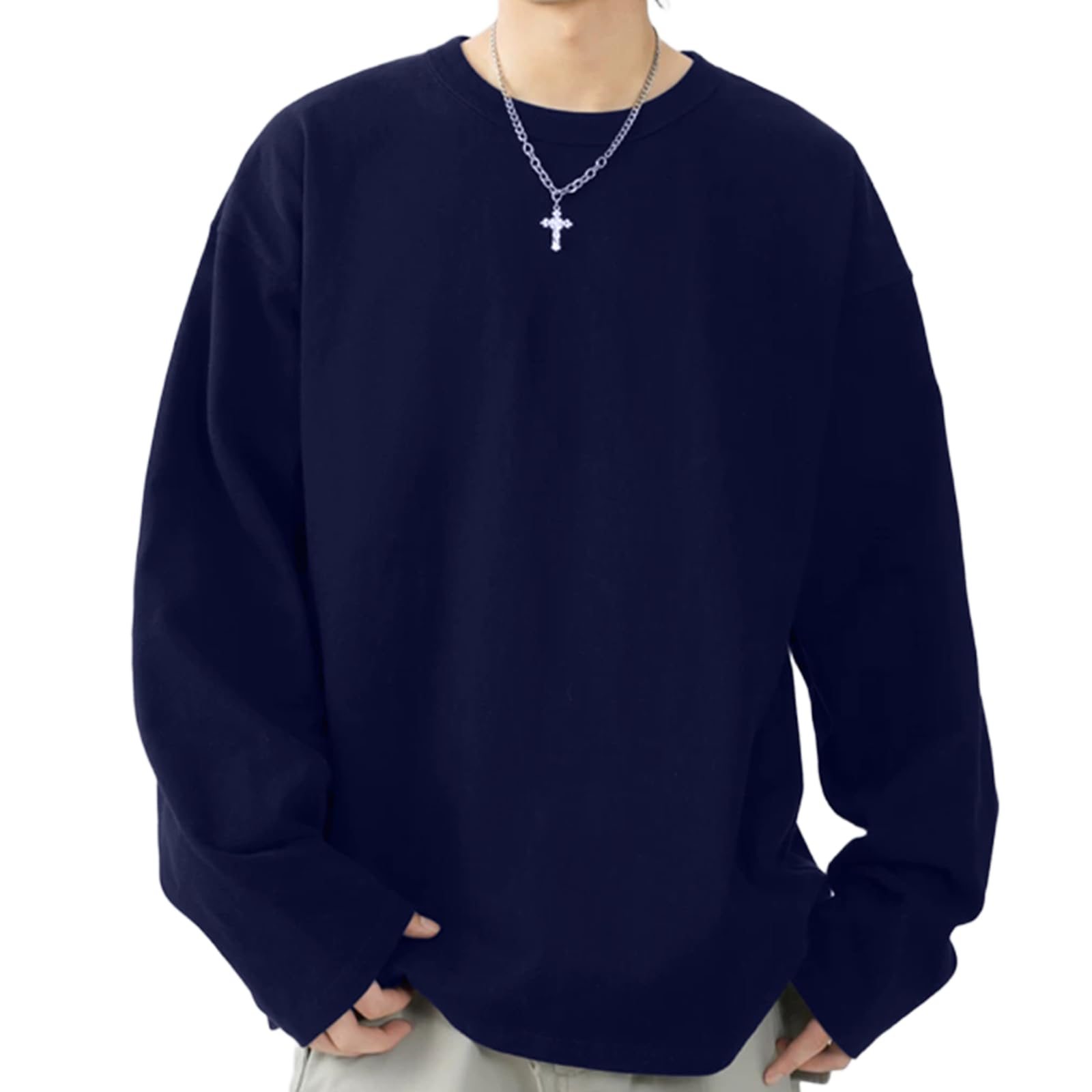【送料無料】[Cailin Kailun] 長袖Tシャツ メンズ 綿100% 吸汗性 抗菌防臭 大きいサイズ 無地 丸首カットソー インナーシャツ シンプル オシャレ 春秋冬 色:ネイビー、サイズ:XL