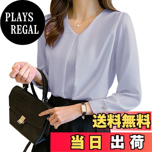 【送料無料】[Lalapala] シャツ ブラウス レディース 長袖 Vネック 上品 トップス ゆったり 大きいサイズ 無地 おしゃれ スッキリ 着回し 体型カバー 日常 オフィス カジュアル 通勤 入園式 二次会 ビジネス デート 春 秋冬 色:ブルー、サイズ:M