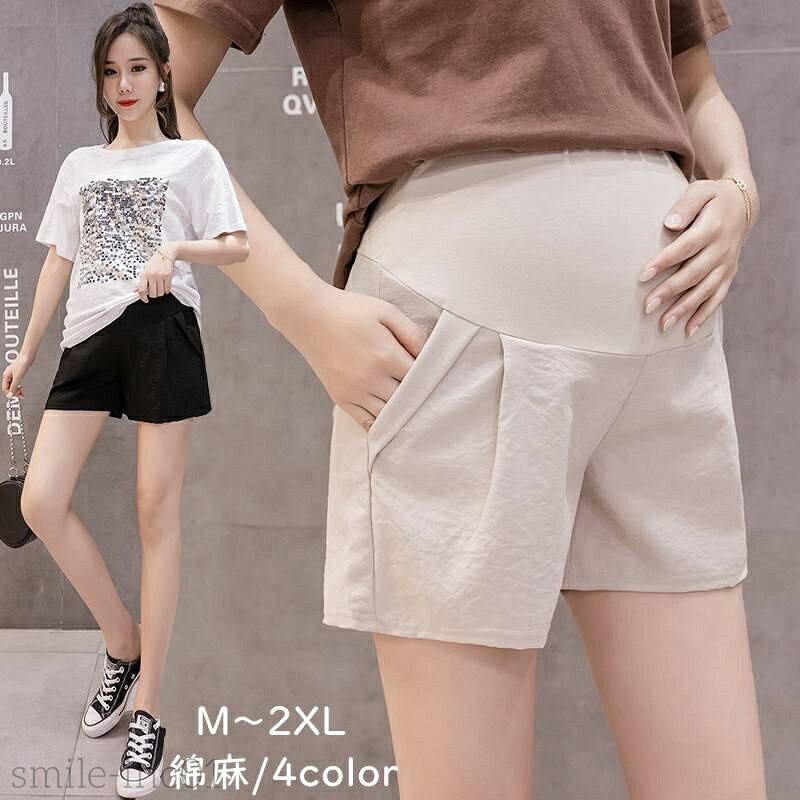 ゆったり 長く使える産前産後マタニティ ショートパンツ ポケッ