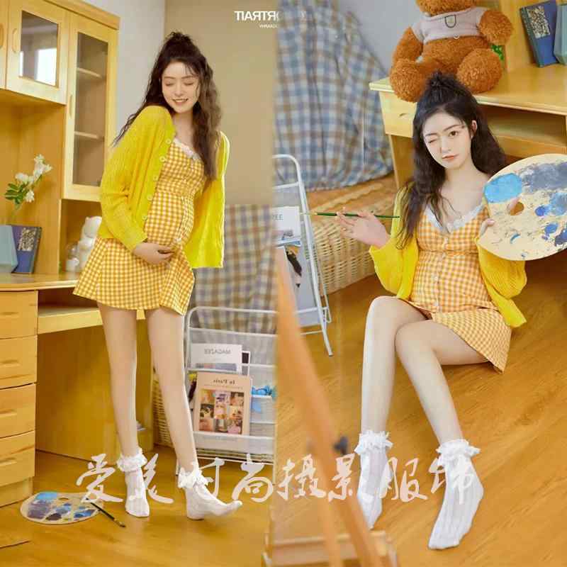 マタニティフォト 衣装 セットアップ スタジオ 夏 テーマ 撮影 かわいい ニット キャミソール ママ ホワイト ピンク ブラック フリーサイズ デニム カチューシャ