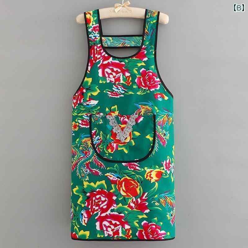 エプロン おしゃれ ママ 防水 花柄 エプロン 北東 風大 ゆったり エスニック キッチン 農家 風 家庭 料理用 作業着 パフォーマンス