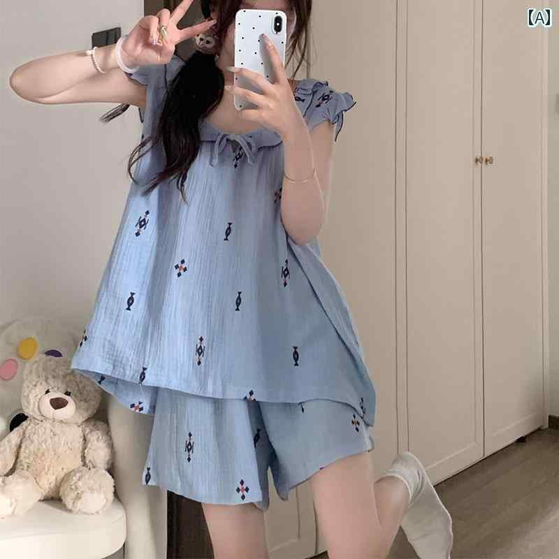 半袖 半ズボン パジャマ M 韓国 綿 ガーゼ かわいい サスペンダー ショーツ パジャマ セット 夏 女の子 大きいサイズ ホーム 服 200ポンド