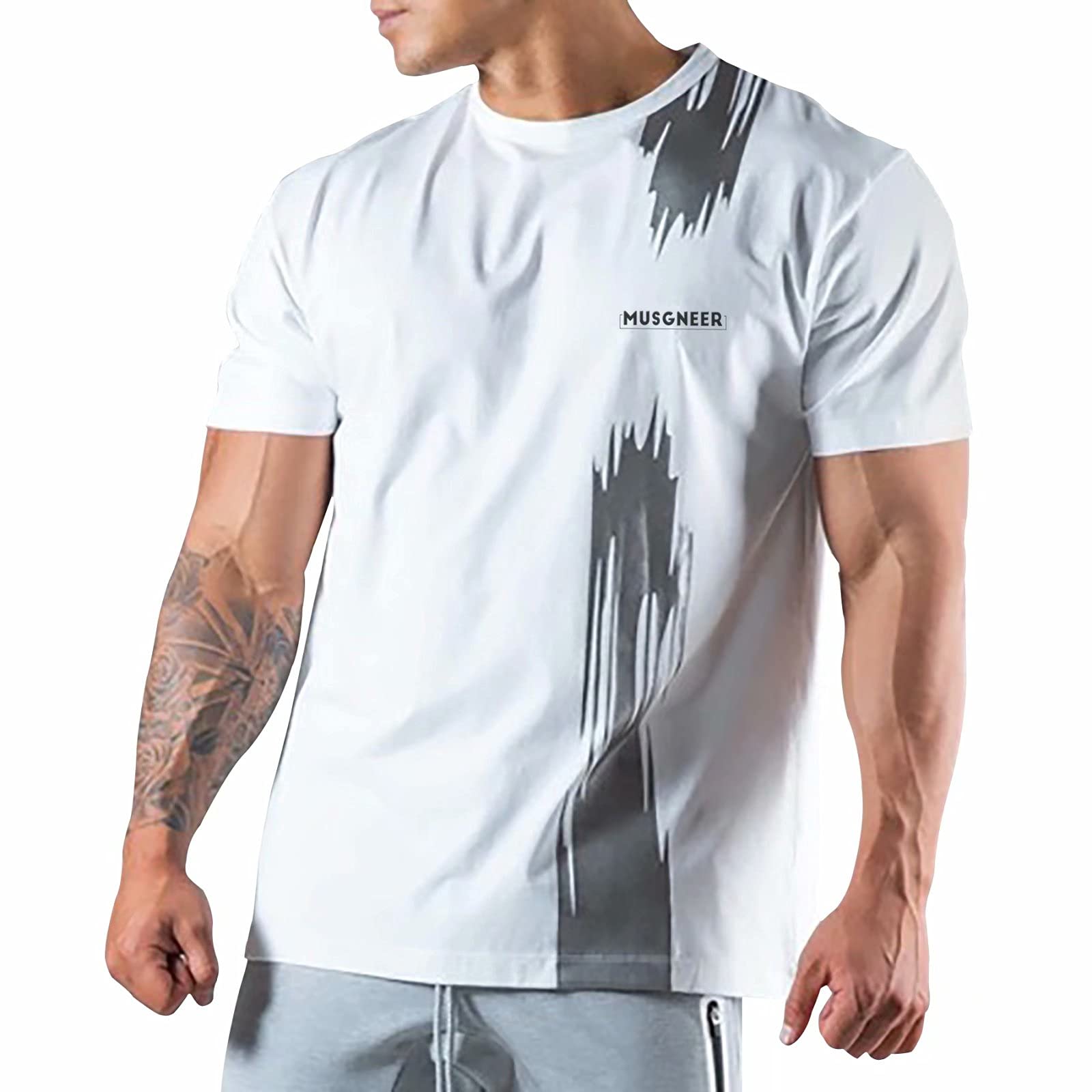 【送料無料】[Musgneer] ジム tシャツ メンズ ストレッチ 半袖 フィットネス トレーニング 筋トレ スポーツ おしゃれ オーバーサイズ 5分袖 色:Bホワイト、サイズ:2XL