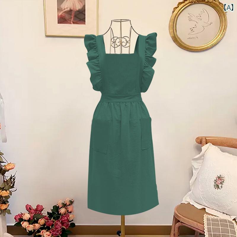 エプロン おしゃれ ママ フランスの レトロ 蓮の葉の レースの エプロン 家庭用 キッチン 防汚 耐摩耗 オーバー オール フラワーアート ネイルショップ 作業着 ウエスト