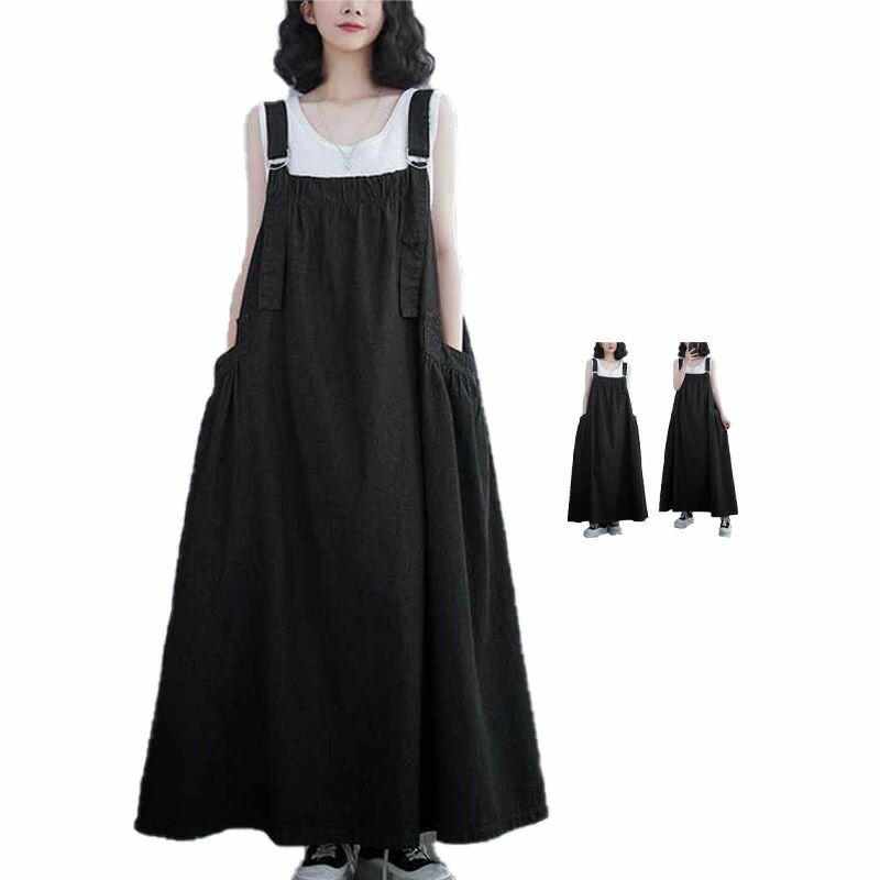 ジャンパースカート レディース ロング Aライン ロング デニム 秋 マキシワンピース ジャンスカー 春 デニムワンピース ロング丈 送料無料 サロペット 大きいサイズ ポケット付き ワンピ オールインワン 体型カバー ゆったり デニムワンピ