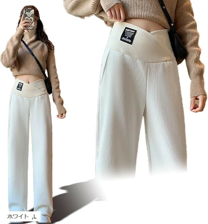 マタニティ パンツ ズボン 妊婦 調整ベルト ゆったり 楽々 おしゃれ 着痩せ (ホワイト, L)