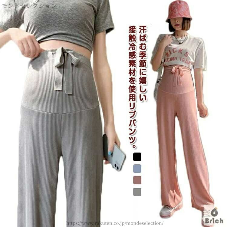 リブパンツ ストレートパンツ ストレッチ ボトムス 妊婦服 ワイ