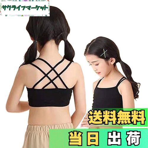 【送料無料】[InSomila] [インソミラ] 子供服 2着セット ハーフトップ タンクトップ キッズ 女の子 ダンス ヒップホップ スポーツ インナー 小学校 重ね着 キャミソール 黒 (140, ブラック)