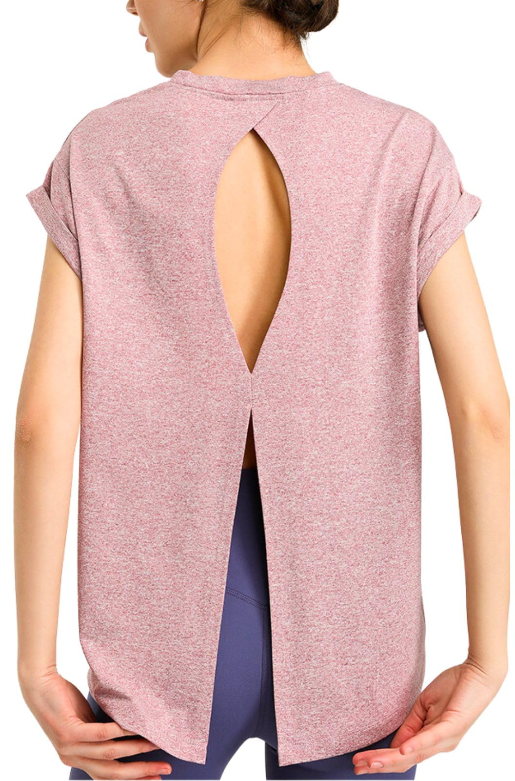 【送料無料】[Cenote Rico] 【美背中スタイル】 ヨガウェア 体型カバー 着やせ レディース トップス 半袖 ロング丈 吸汗速乾 ピラティス ホットヨガ [サラサラ生地が心地良い] [ほめられウェア] 色:杢ピンク、サイズ:XL