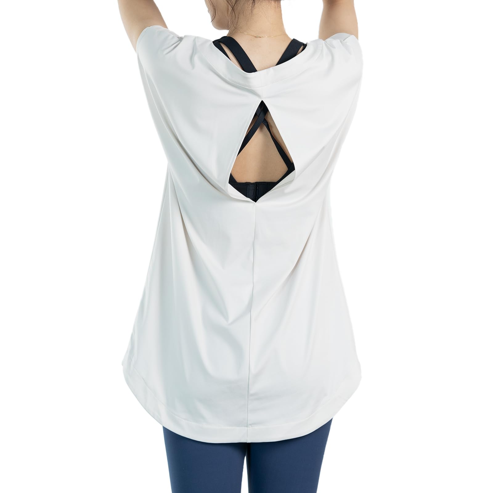 【送料無料】[iito.seasons] ヨガウェア レディース 丈長め ゆったり オープンショルダー 体型カバー フィットネス 半袖 フィットネス 吸汗速乾 UVカット 紫外線対策 薄手 夏 おしゃれ 色:アイボリー、サイズ:S