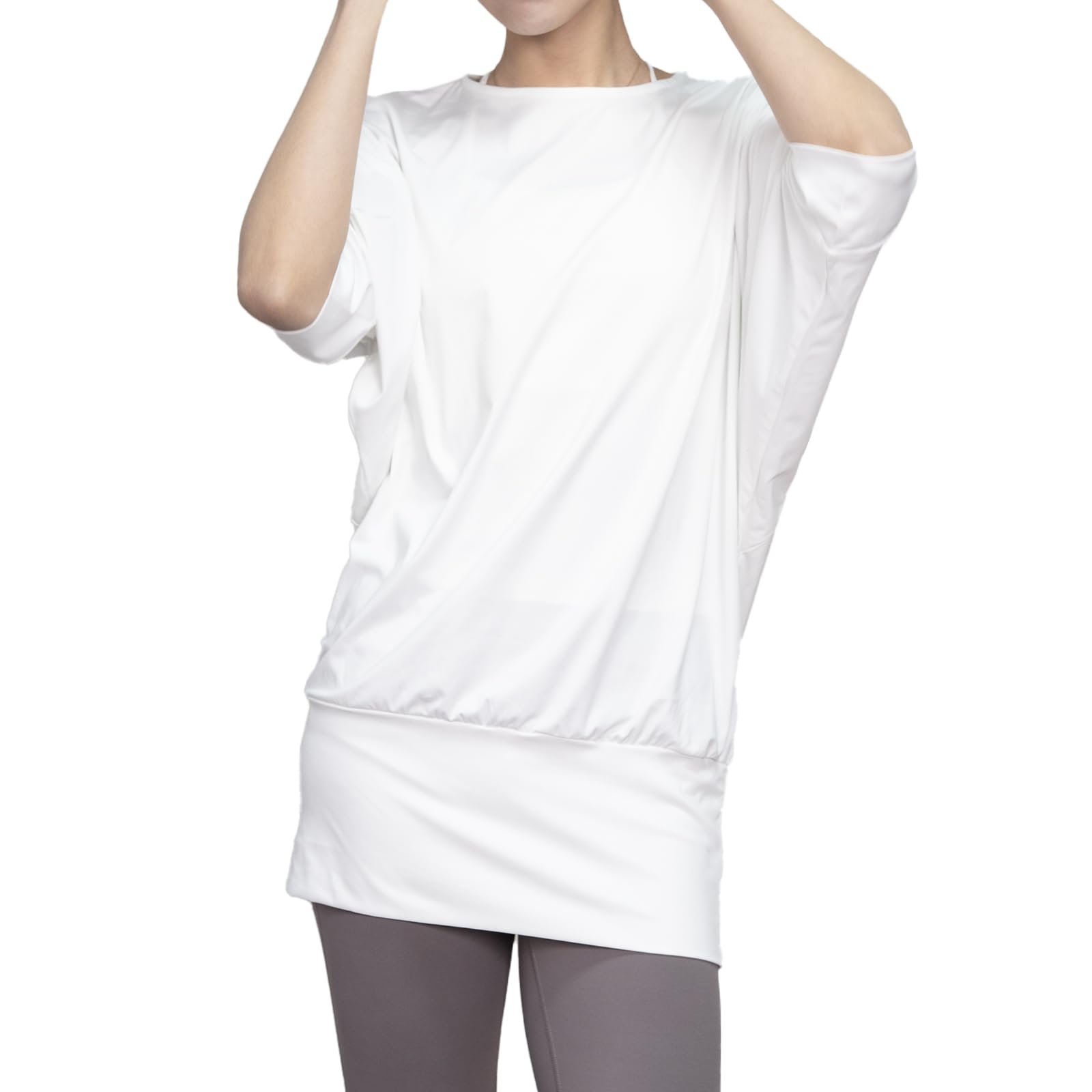 【送料無料】[iito.seasons] ヨガ ドルマンスリーブ ヨガウェア レディース 丈長め ゆったり トップス 体型カバー フィットネス 半袖 スポーツ フィットネス 吸汗速乾 UVカット 紫外線対策 薄手 夏 おしゃれ かわいい 色:ホワイト、サイズ:L