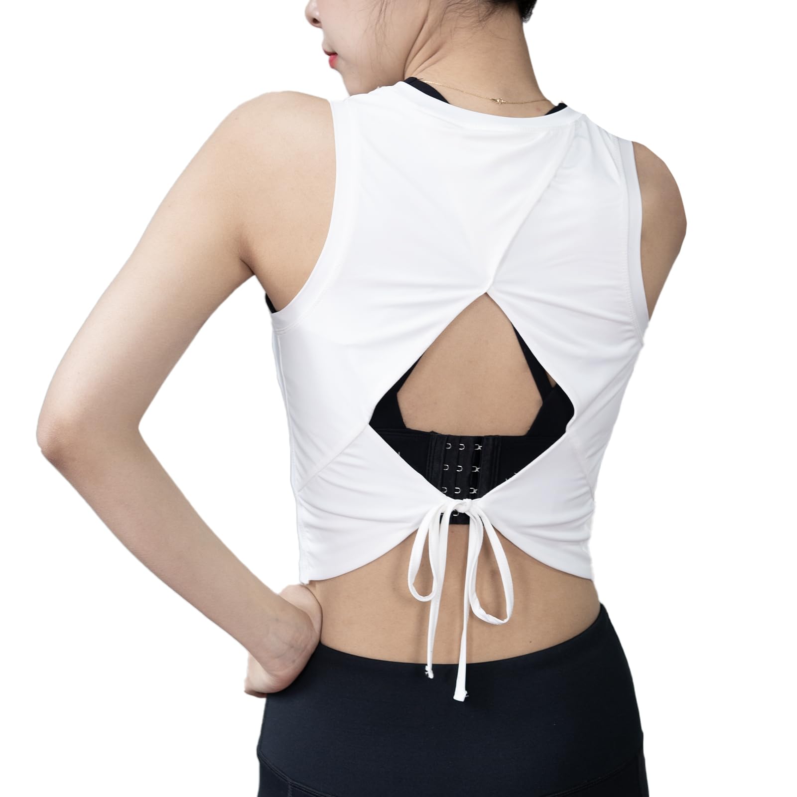 【送料無料】[iito.seasons] タンクトップ ショート丈 レディース ノースリーブ スポーツウェア ヨガウェア へそ出し 背中 通気 防臭 吸汗 速乾 ダンス トレーニング フィットネスクシャツ 色:ホワイト、サイズ:S