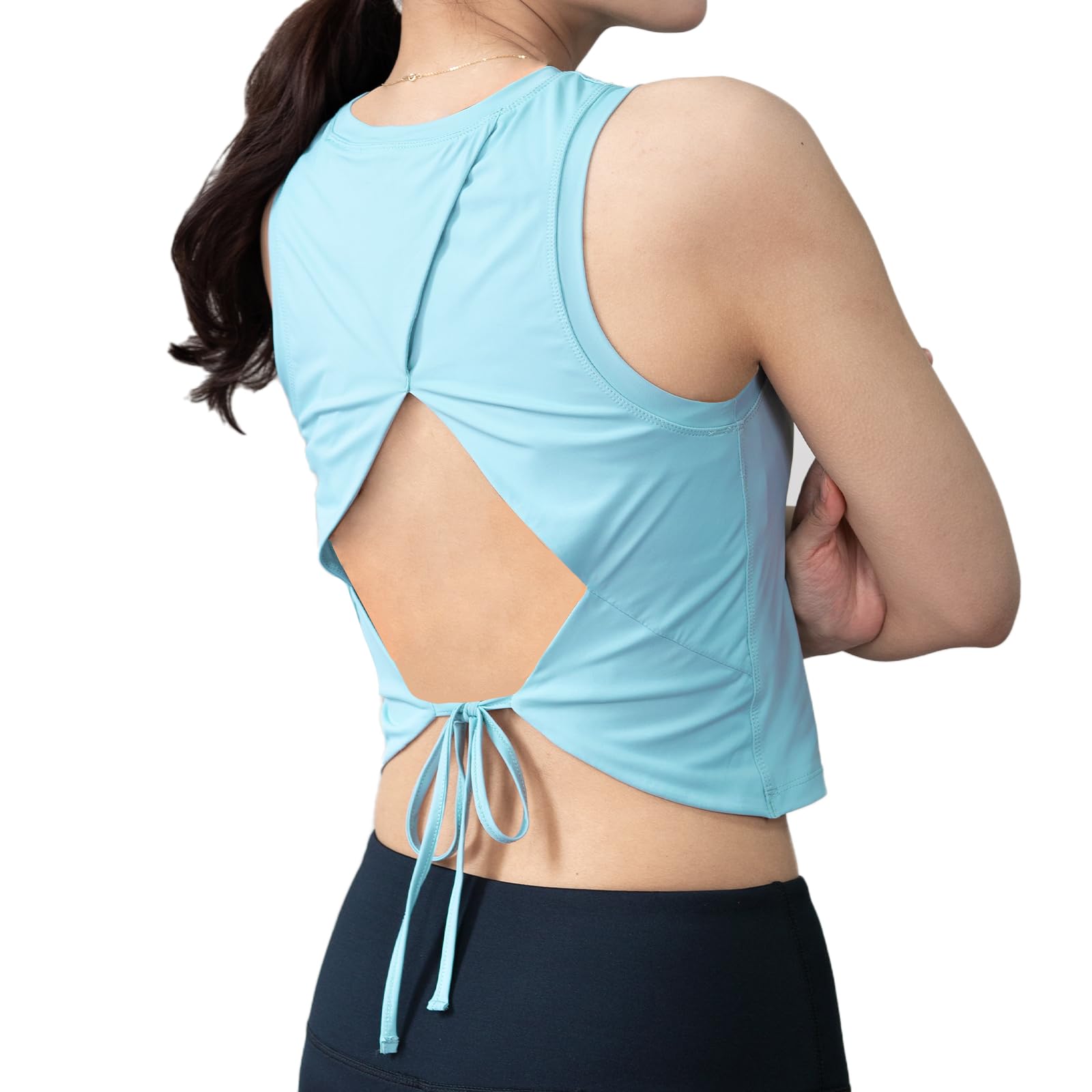 【送料無料】[iito.seasons] タンクトップ ショート丈 レディース ノースリーブ スポーツウェア ヨガウェア へそ出し 背中 通気 防臭 吸汗 速乾 ダンス トレーニング フィットネスクシャツ 色:ベビーブルー、サイズ:S