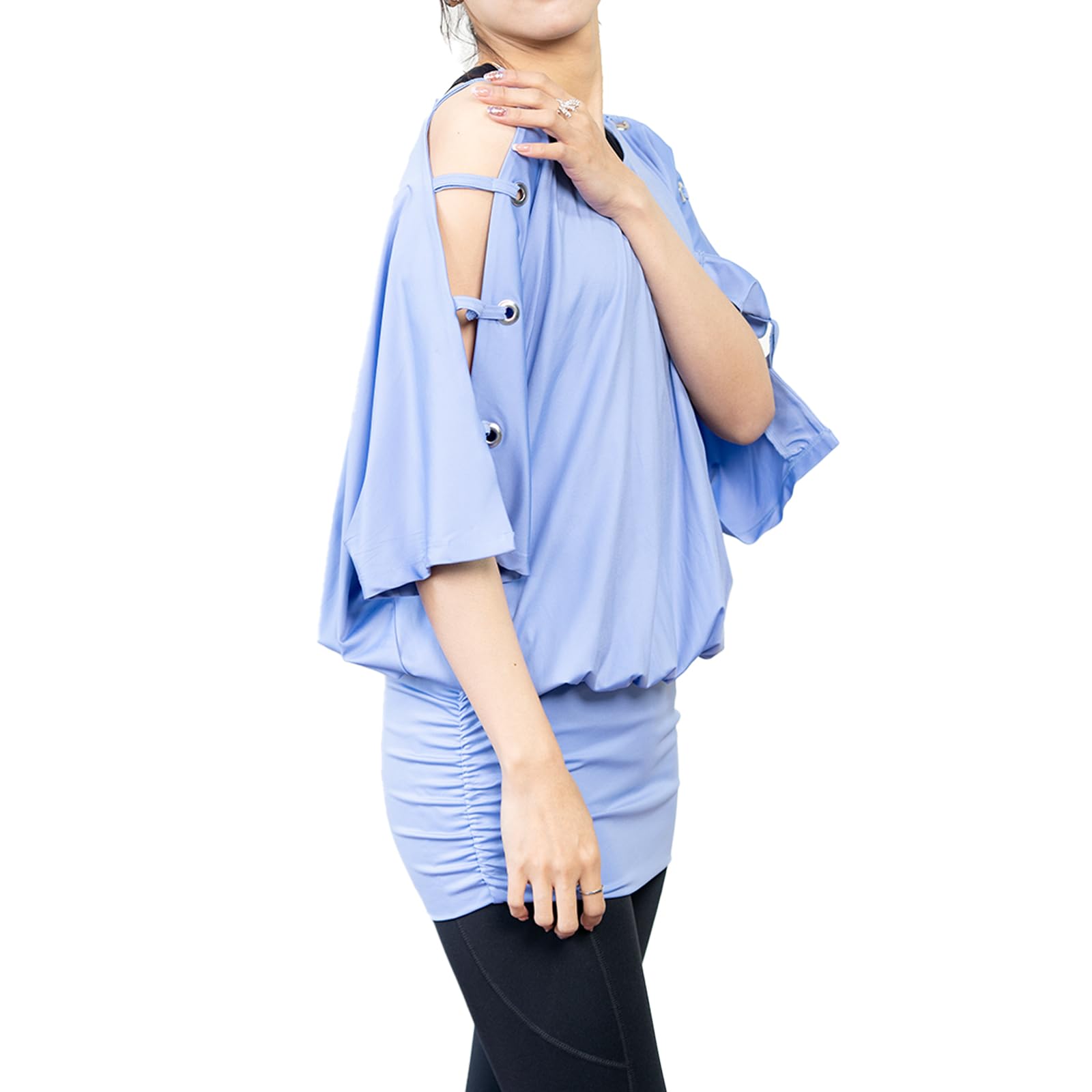 【送料無料】[iito.seasons] ヨガウェア レディース 丈長め ゆったり オープンショルダー 体型カバー フィットネス 半袖 フィットネス 吸汗速乾 UVカット 紫外線対策 薄手 夏 おしゃれ 色:ヒヤシンスブルー、サイズ:M