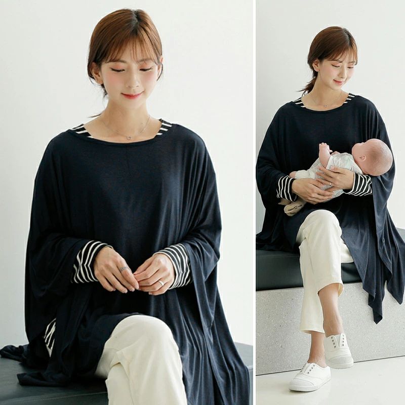 M~3XL 授乳口付き 授乳tシャツ 体型カバー 安心 便利 ロング丈 おしゃれ