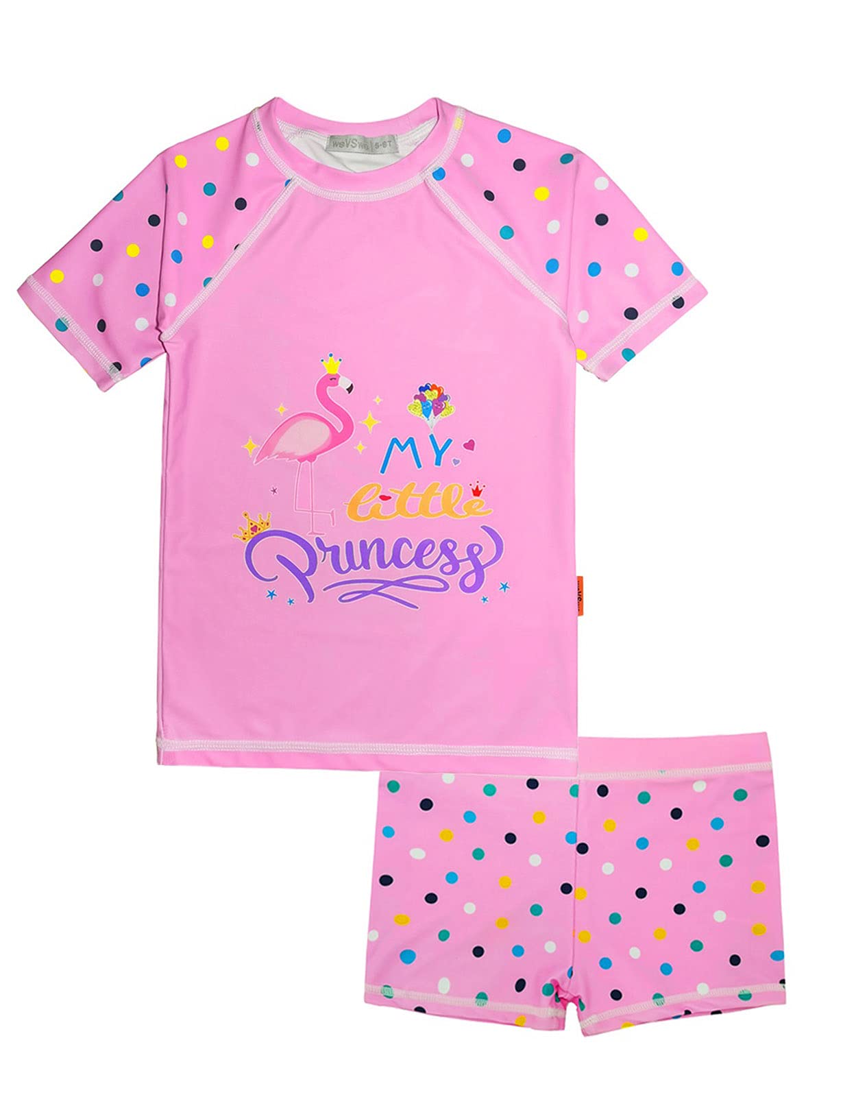 【送料無料】[weVSwe] 水着 女の子 ラッシュガード キッズ 女の子 セパレート 半袖 キッズ水着 子供用小学生 幼稚園 UPF50+ UVカット 色:フラミンゴ、サイズ:5-6 Years