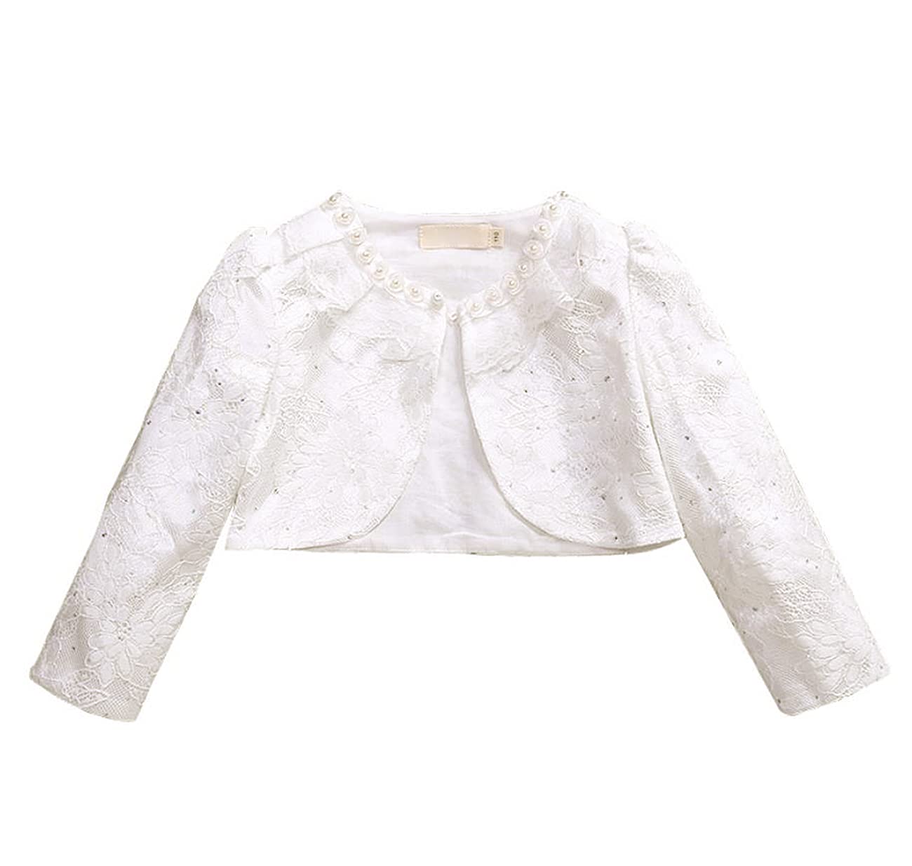 【送料無料】VIISEN 子供 長袖/半袖 ボレロ レース 子供服 女の子 結婚式 ボレロ キッズ フォー マル カーディガン 柔らか フォーマル ドレス ボレロ 可愛い 発表会 入園式 卒園式 結婚式 色:2/ホワイト、サイズ:90