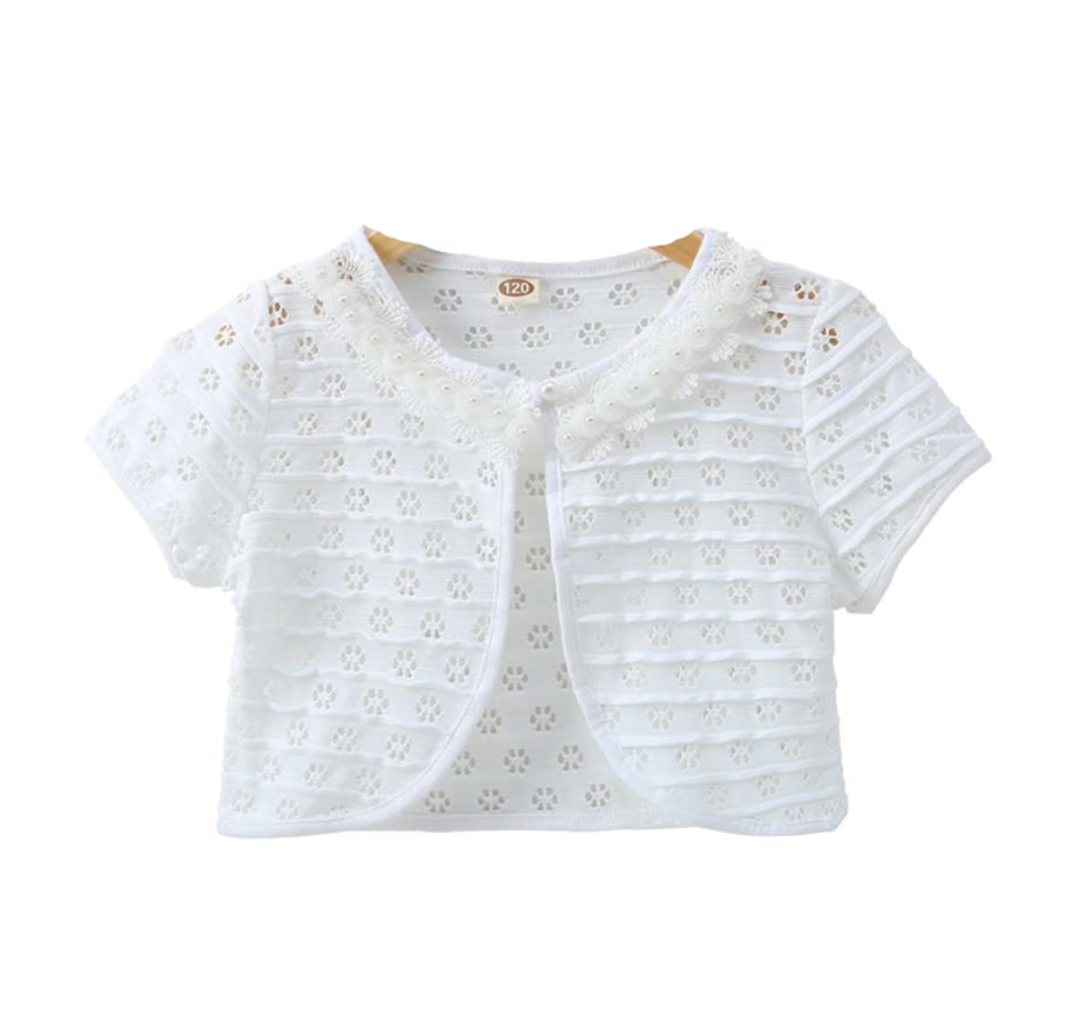 【送料無料】VIISEN 子供 ボレロ 半袖 夏 子供服 女の子 キッズ 結婚式 ボレロ薄 女児 可愛い フォーマル ドレス ボレロ 発表会 入園式 卒園式 結婚式 100-150cm 色:1/ホワイト、サイズ:110