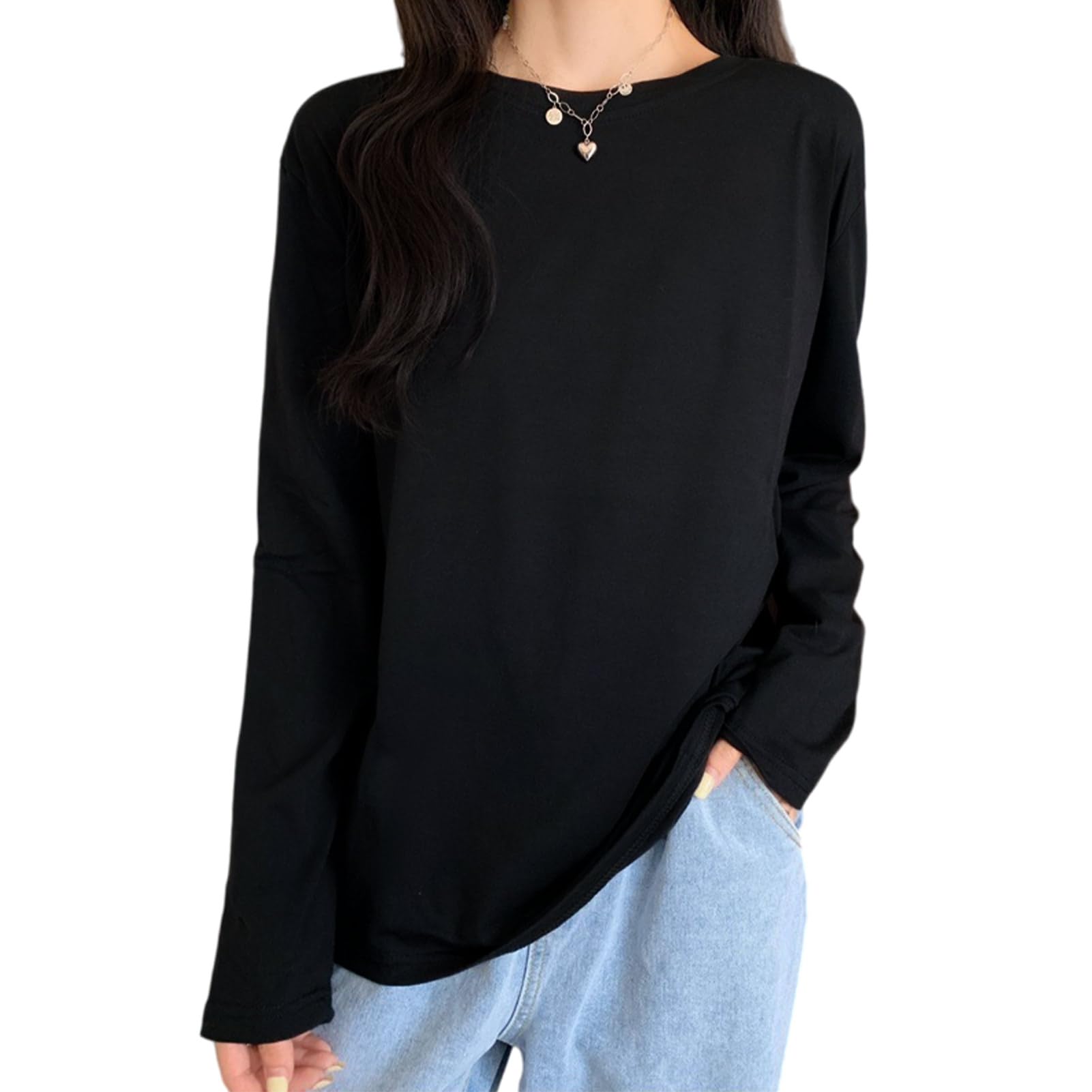 【送料無料】[Formemory] 長袖 tシャツ カットソー ティーシャツ レディース トップス 秋 保温 丸首 ラウンドネック 着痩せ 耐久性 伸縮性 通気性 重ね着 通勤 ゆったり ボリュームスリーブ フライス シンプル (JP, アルファベット, XL, ブラック)