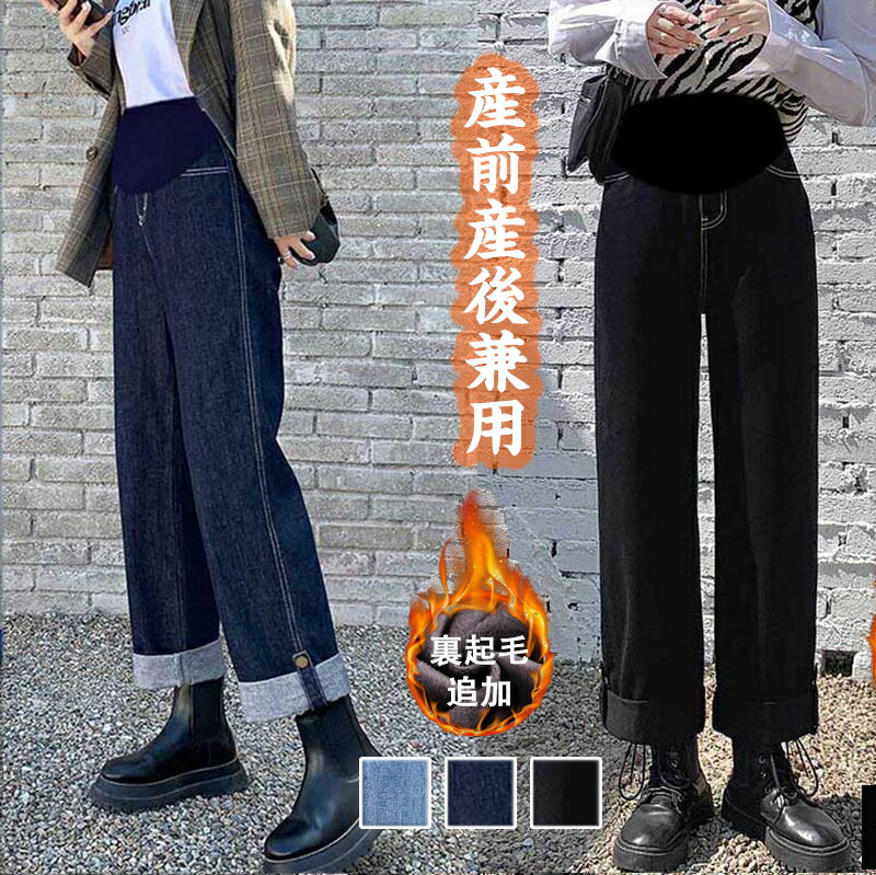 マタニティ パンツ 裏起毛 リブ マタニティパンツ 冬 極暖 高見