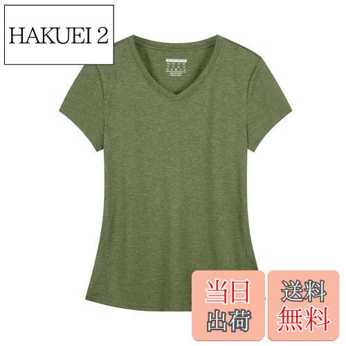 【送料無料】[KEFITEVD] 半袖tシャツ レディース 大きいサイズ vネック ランニングシャツ ゆったり ストレッチ ピラティス ヨガウェア 吸汗速乾 涼しい 夏服 グリーン L