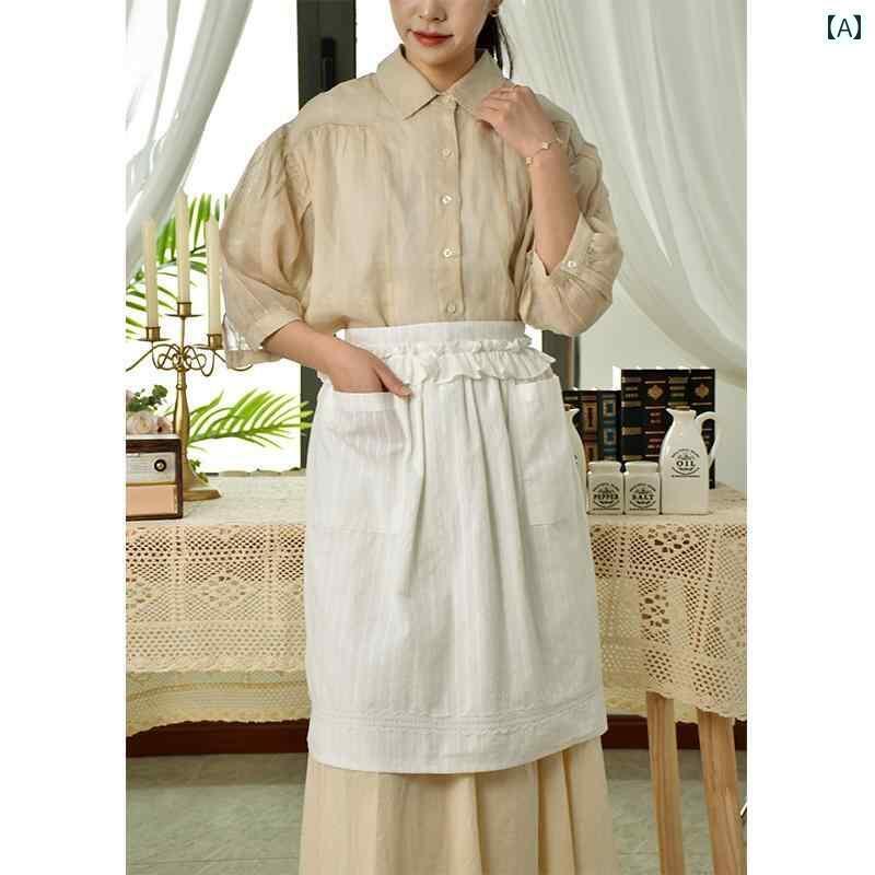 エプロン おしゃれ ママ レトロ 田園 風 生地の 綿 半端 丈 エプロン 女性用 花屋 ベーキング 作業着 家事 キッチン